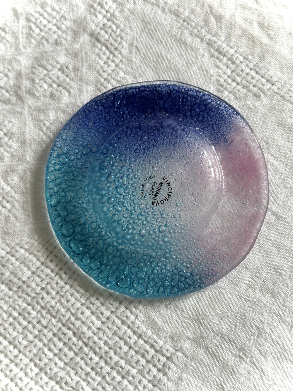 Murano Italy blue glass grape and dish set