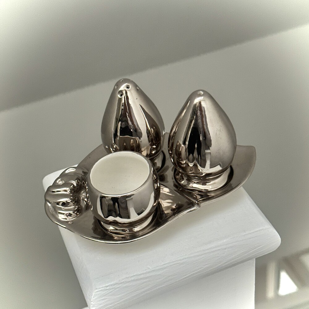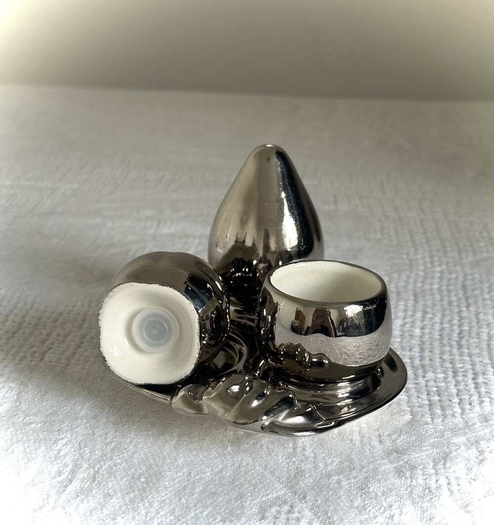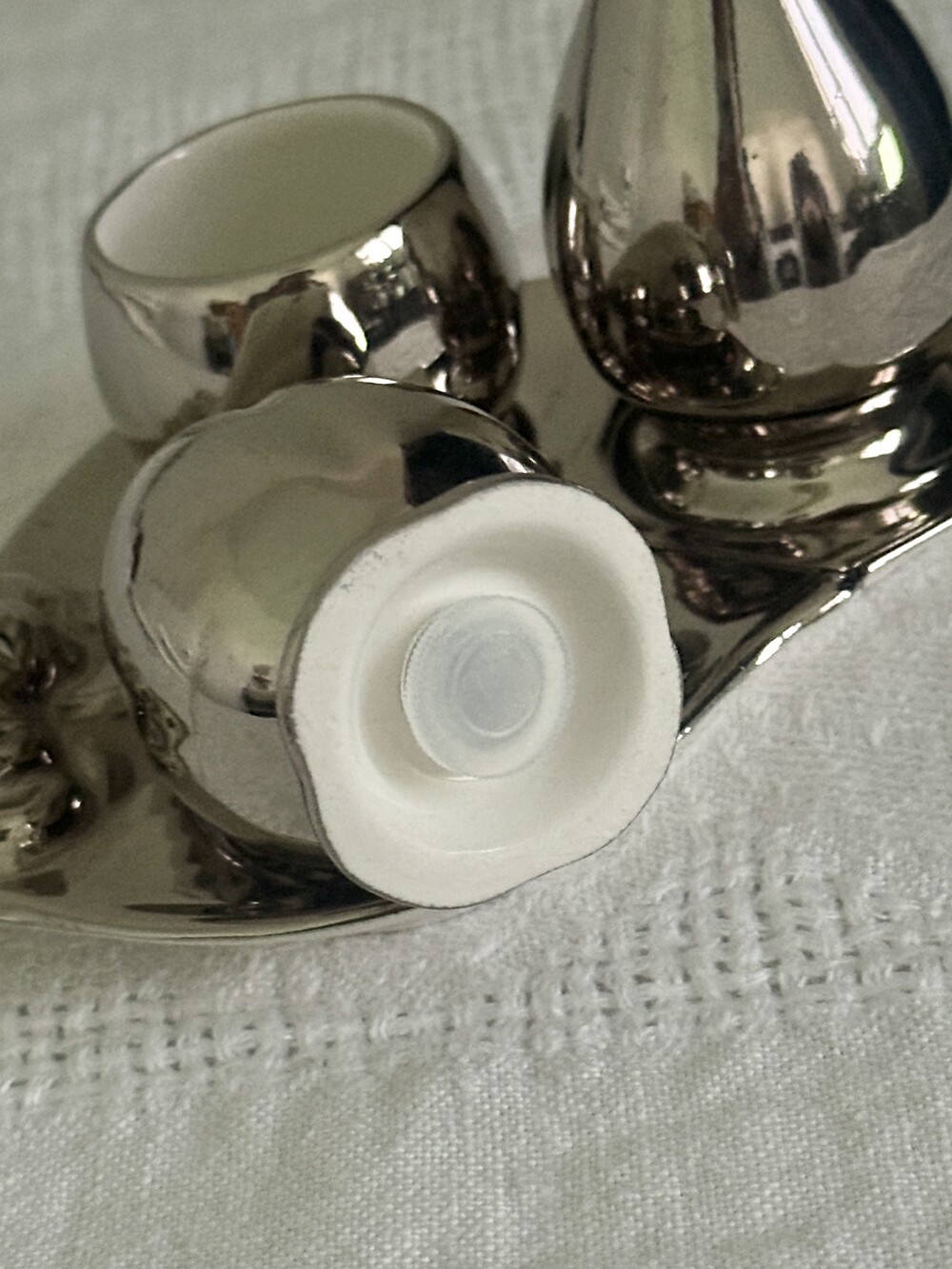 포셀린 위에 실버페인팅이 된 제품입니다.